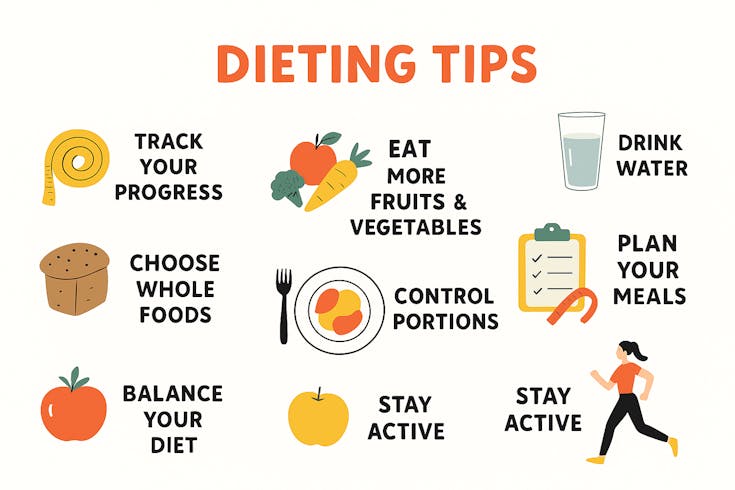 Effective dieting begins with balanced meals, portion control, and choosing whole, nutrient-rich foods. Stay hydrated, avoid processed items, and eat mindfully. Combine healthy eating with regular physical activity, consistent meal timing, and good sleep to support metabolism and long-term wellness.